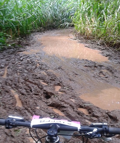 Trying to recce the bike course after heavy rainfall! Luckily most of it had dried by race day.
