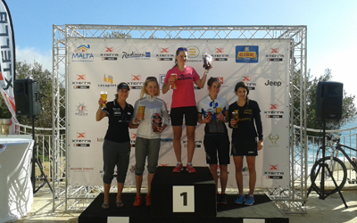 I knew there were some uber-bikers behind me though, not least my fellow GB teammate (and Commonwealth Games MTB-er) Jess Roberts. She promptly flew past up the first technical climb where I was still recovering my balance from the swim! My Aloha teammate Elisabetta Curridori was also in the mix, and on the second lap I managed to hang on to the wheel of Maud Golsteyn until the biggest climb. She had recovered the time lost on the swim… but was still recovering from racing Cape Epic MTB stage race only the week before – legend!