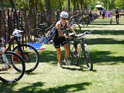 I actually love a non-wetsuit swim, & this was my favourite part of the race! Running up the river bank through cheering crowds & diving off the pontoon for lap 2 was fun - although I couldn’t keep with the men I’d been swimming with and ended up alone for the second 750m – losing some time. But in such a long race I don’t think it makes much difference, so crack on with the bike.