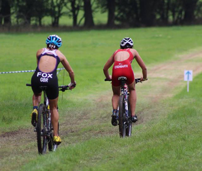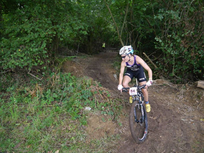 I didn't panic though, as their pack was still in sight as we reached the swim exit - 20 seconds hardly counts for anything when we've now got 2 hours on the bike. I felt spaced out going into transition though, couldn't think what I was doing, so just do everything more slowly to make sure I don't forget anything. The fuzzy head continued onto the bike, and I immediately rode into a tree - hoping nobody saw! Only the second trail section I was caught by Renata - she must have wondered what I was doing as I struggled to balance round the corners in the mud (which was now super slick and lethal for the un-initiated!!)