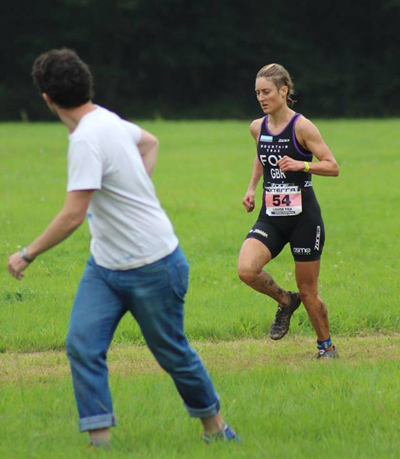 I don't even know how I finished the run, as I wasn't feeling with it at all, trying to get another gel in but feeling pretty sick. I didn't trust my core not to cramp up again so I had to go very carefully (slowly!) over all the technical ground. I didn't dare to jump the ditches like last year, yet crossing the log bridges was a major challenge in balance! Amazingly no-one passed me for the entire run - apart from Jacqui already on her second lap and offering words of encouragement. As I crossed the final ditch with 500m to go, I looked back to see 10th place girl had almost caught me, and I thought no - I cannot have a repeat of Germany (ETU Champs) happening all over again - I'm not going to lose out in a sprint finish for 10th place again! So I gave everything I had in the final field - which was pretty much nothing - but thankfully just enough to hold on for 9th.