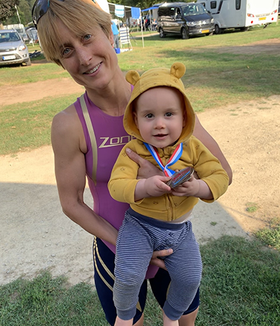 It was great to be back on the race scene, catch up with old friends, make the trip into a camping holiday with the family, and best of all have my Torben there supporting the race (well, being carried around by Daddy!) The best part of the day was crossing the finish line and giving him my medal! Of course he doesn't know the significance of it but he enjoyed playing with a bit of bling ;)