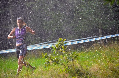 Epic rain on Jacqui just before she lapped me on the run...