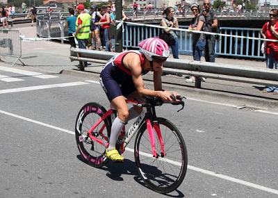 I was first out onto the bike, and here the plan was to set off comfortably, get the nutrition in and then ride hard on the second lap.
