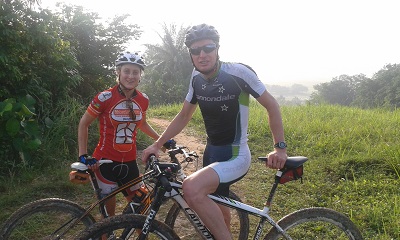 Recce-ing the bike course with coach Sam
